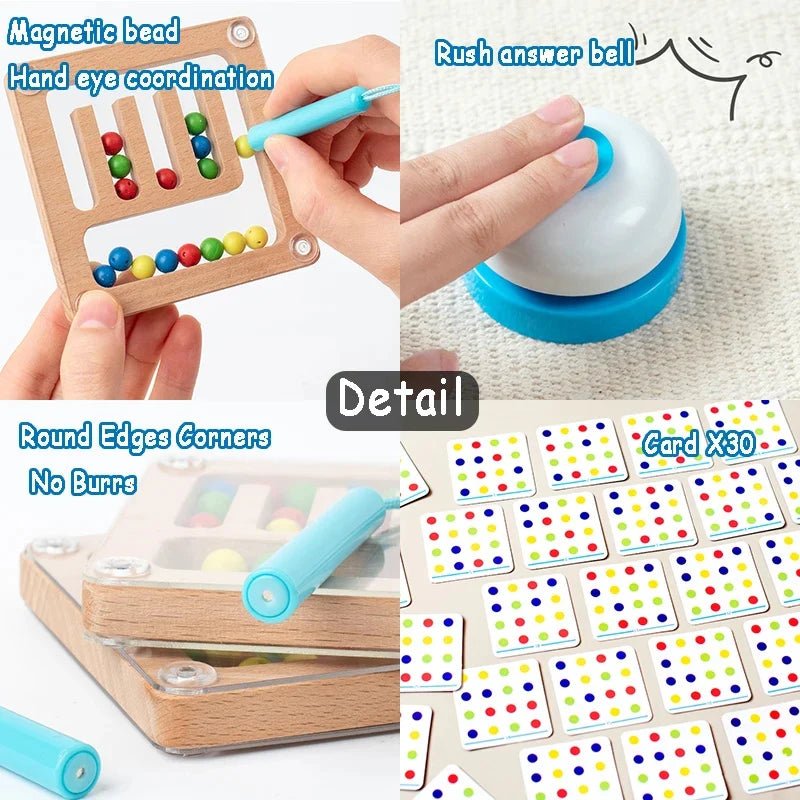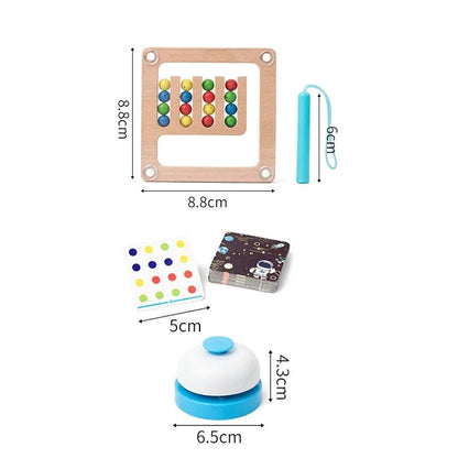 قم بتحسين مهارات التعاون والتواصل مع لعبة فرز الأقلام المغناطيسية. استخدم عصا القوة المغناطيسية لترتيب الألوان بالترتيب، باتباع البطاقات المرسومة عشوائيًا. تتضمن لوحتين مغناطيسيتين للمتاهة، وعصي، وجرس، و30 بطاقة لعبة. أبعاد اللوحة: 8.5 × 8.5 سم. أبعاد الصندوق: 27.5 × 23.5 × 5.5 سم.