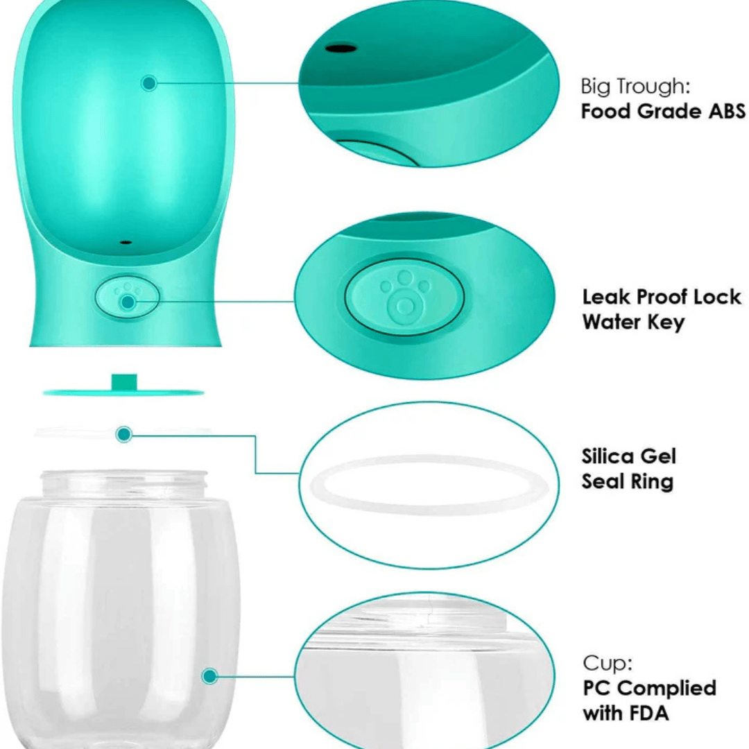 زجاجة مياه محمولة خالية من التسرب للحيوانات الأليفة