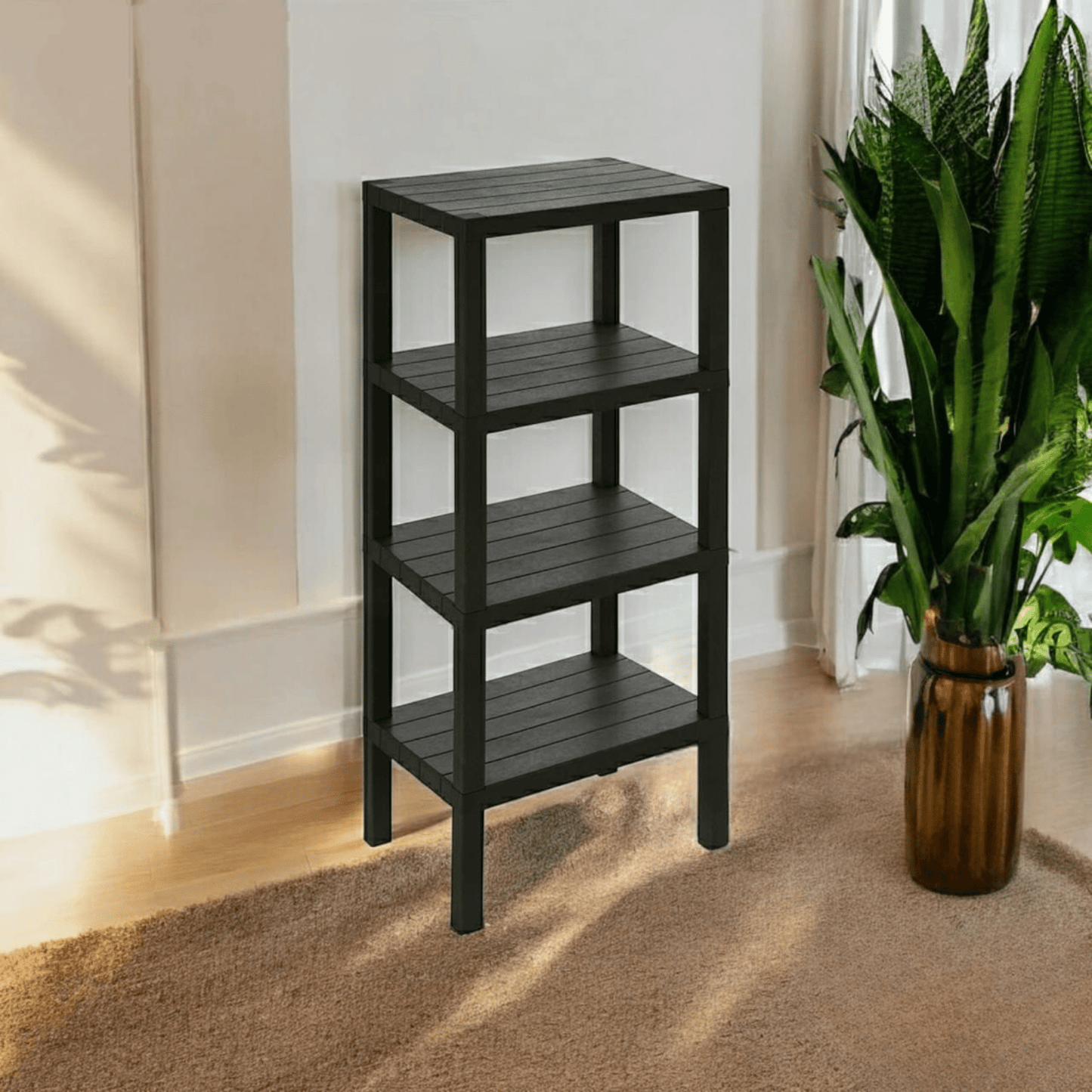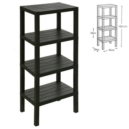 This 4-tier shelving unit is made of BPA-free polypropylene, providing a durable and safe storage solution. Its wood-like texture adds a touch of elegance to any room while offering ample space for organizing and decluttering. Upgrade your storage game with this versatile and stylish unit.