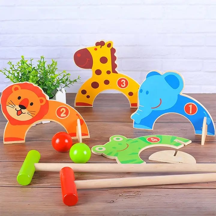 Introducing the quirky and playful Animals Gate Ball - the perfect wooden toy package for children ages 3 and up! With dimensions of 43.5x19.5x4.6cm, this gate ball offers endless hours of fun and entertainment. Get ready to unleash your child's imagination with this unique and exciting toy.