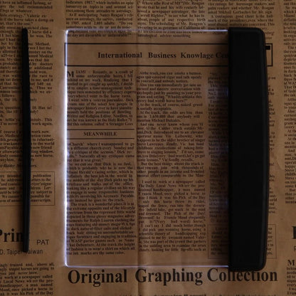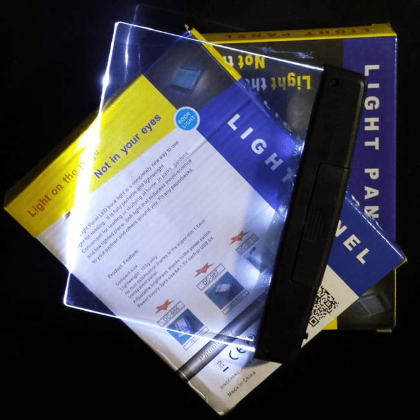 This book light panel is a compact and lightweight portable light source specifically designed to enhance the reading experience. It features an adjustable LED light that can be easily clipped to book pages. AAA batteries are not included. With its compact design, it is perfect for travel, making it easy to carry and store.