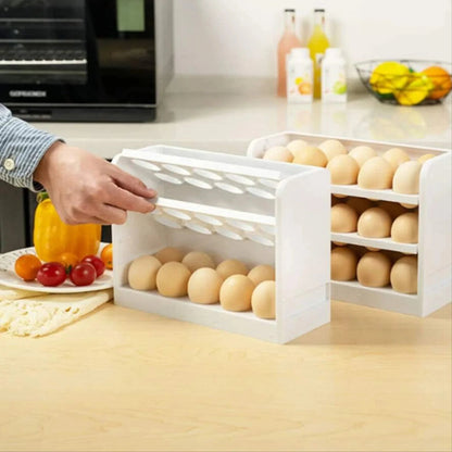 This 3-layer eggs storage box has a capacity of 30 eggs and dimensions of 25 x 19.5 x 10 cm. Keep eggs organized and safe with this convenient storage solution. Perfect for any kitchen, this box is a must-have for those who love to cook.