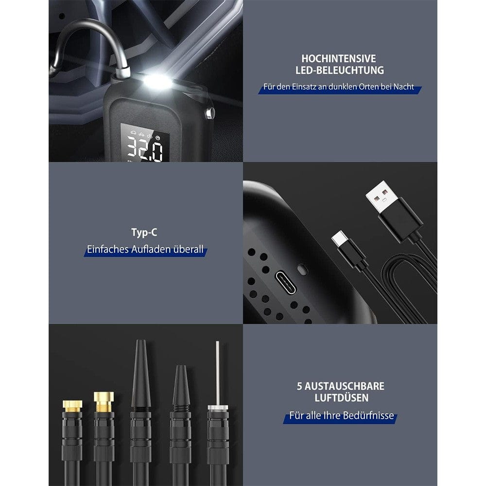 Effortlessly inflate with the Electric Air Pump. Choose from 4 units and enjoy a maximum pressure of 150 PSI. With a built-in battery, it's perfect for cars, motorcycles, and more. Conveniently compact at 13 x 8 cm, it's the perfect tool for all your inflating needs.
