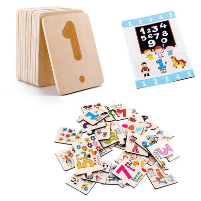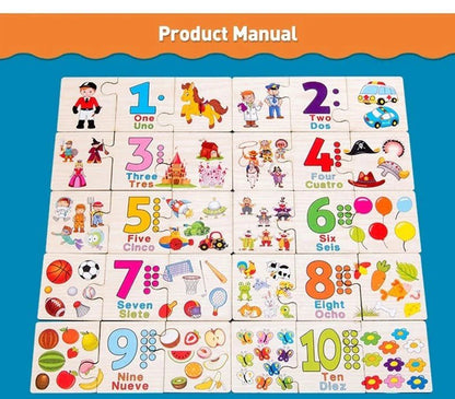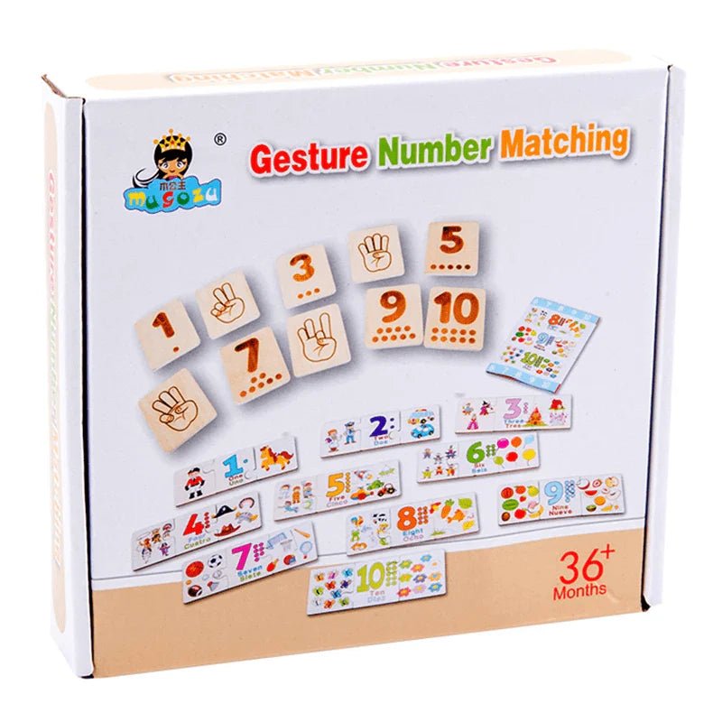 Teach your children basic numeracy skills with Gesture Number Matching. This set includes 36 flashcards and wooden blocks with bright colors and vivid pictures, making learning fun and engaging. Expand their knowledge with words and images of animals, fruits, and vegetables.