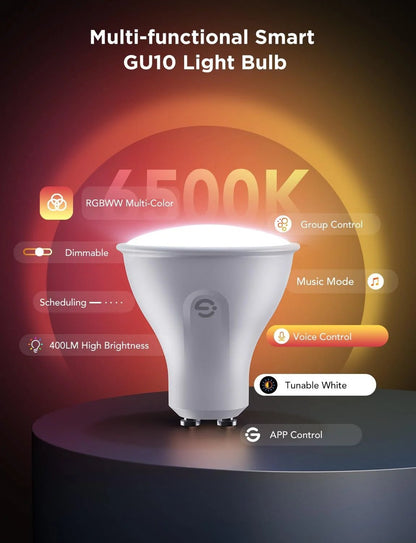 • Timer and Schedule Functions: Govee Smart Bulb GU10 can turn on and off at preset times or at the end of a set timer, bringing significant convenience and enhancing quality of life, as well as energy savings.