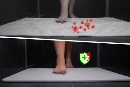 Experience the next level of hygiene with the natural antibacterial properties of diatomaceous earth. The AquaAbsorb Diatomite Mat not only dries your feet promptly but also inhibits the growth of bacteria and mold, ensuring a clean and healthy environment in your bathroom.