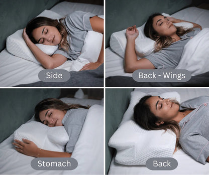 What sets the WingEase Pillow apart is its unique winged design, which makes it possible to sleep on your back, side and stomach while cradling your head and reducing the pressure in your arms & neck.