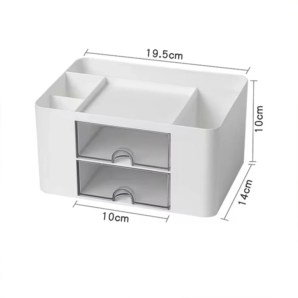 Maximize productivity and minimize clutter with our Organizer, featuring 5 compartments and 2 drawers to keep your desk clean and organized. Perfect for creating more space and increasing efficiency in your daily life and work. Compact size of 19.5 x 14.5 x 10 cm.