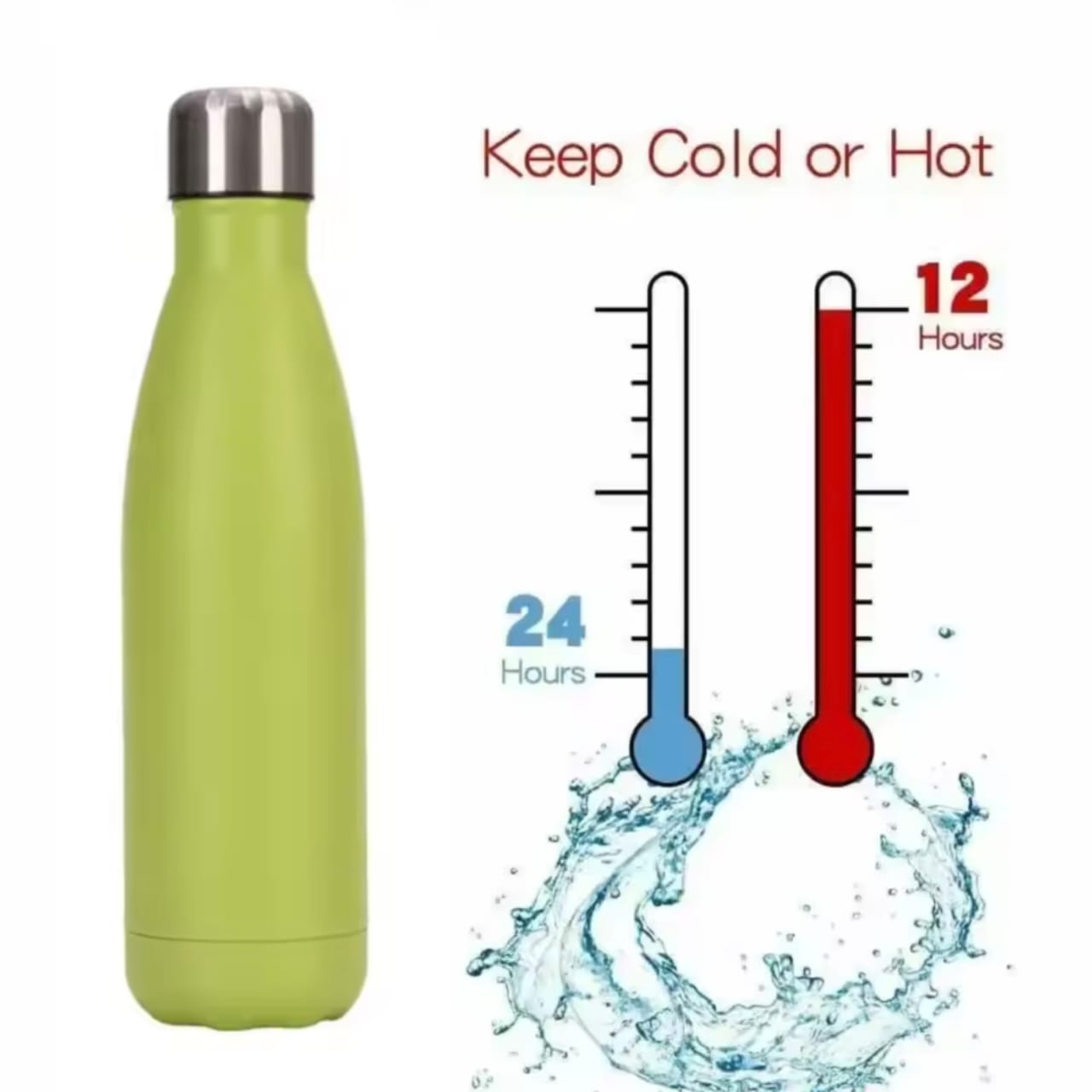 This stainless steel vacuum bottle, with a 500 ml capacity and dimensions of 26.5 x 7 cm, is engineered for optimal temperature retention. It keeps hot beverages warm for up to 12 hours and cold drinks chilled for up to 24 hours, making it ideal for extended use throughout the day. Its durable construction ensures reliable performance and convenience for professionals on the go.