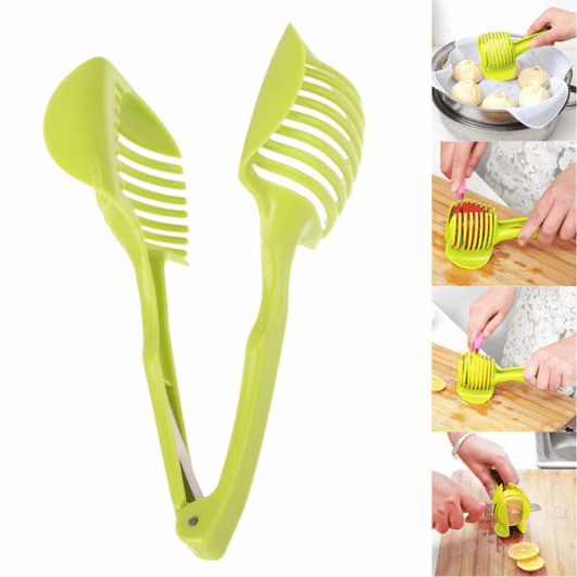 Effortlessly slice and cut tomatoes, lemons, and other round fruits with this versatile handheld fruit tongs. Its durable design ensures precise and efficient cutting, making meal prep a breeze. Enjoy perfectly sliced fruits every time with this multipurpose tool.