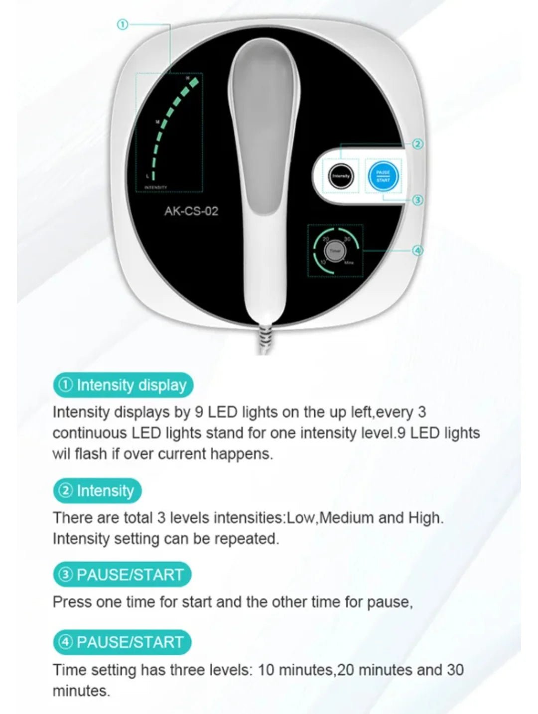 Intensity Levels: 3 adjustable levels to suit different treatment needs
